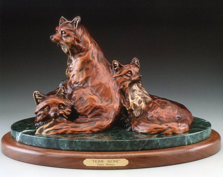 A little play on words here!!! Dawn always had an uncanny way of coming up with a name before she ever began a sculpture and by the looks on these 3 fox kits they are SCARED...where is Mom? They are huddled together with very concerned looks on their faces.